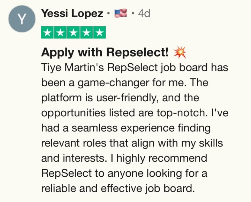 Create a comprehensive sales profile detailing all of your skills and experience. Shareable in job applications both on and off RepSelect.